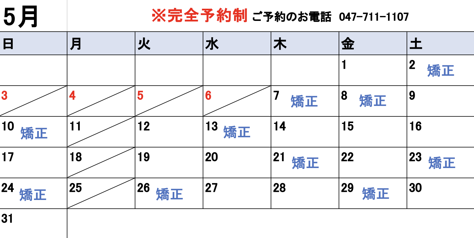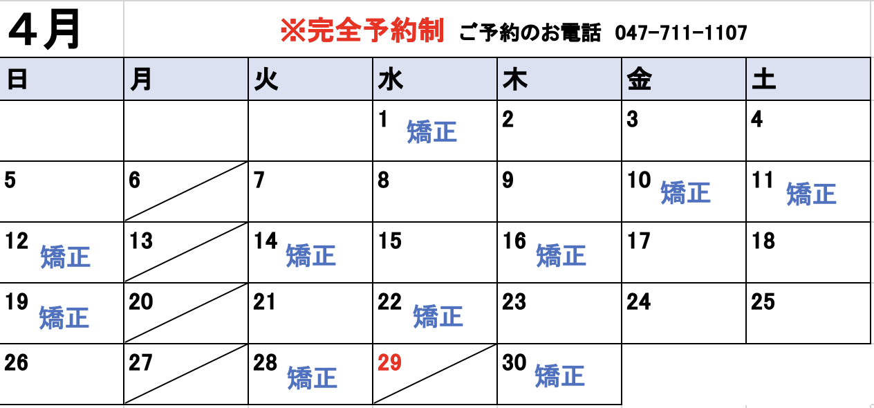 A当院は土曜・日曜も診療しております。お忙しい方でも通いやすいよう、平日が難しい方にも対応しています。※月曜・祝日は休診です。